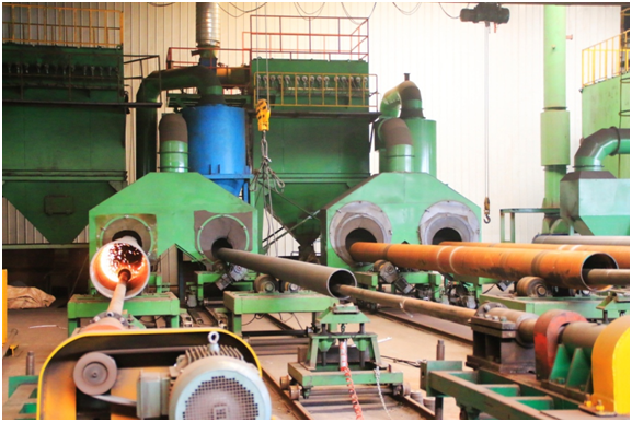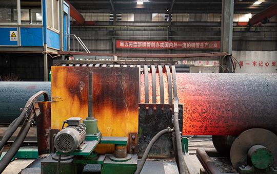 對于Φ273~Φ508無縫鋼管,采用帶坯委外加工方式,見單軋制原管,我司再自行完成熱處理、精整和后道工序;對于直徑>508mm,徑壁比>25(無法軋制)的大直徑薄壁無縫鋼管,委托天淮、誠德等企業穿孔定徑后,我司采用中頻熱擴工藝擴制,結合冷拔、熱處理、精整等能力最終完成成品。