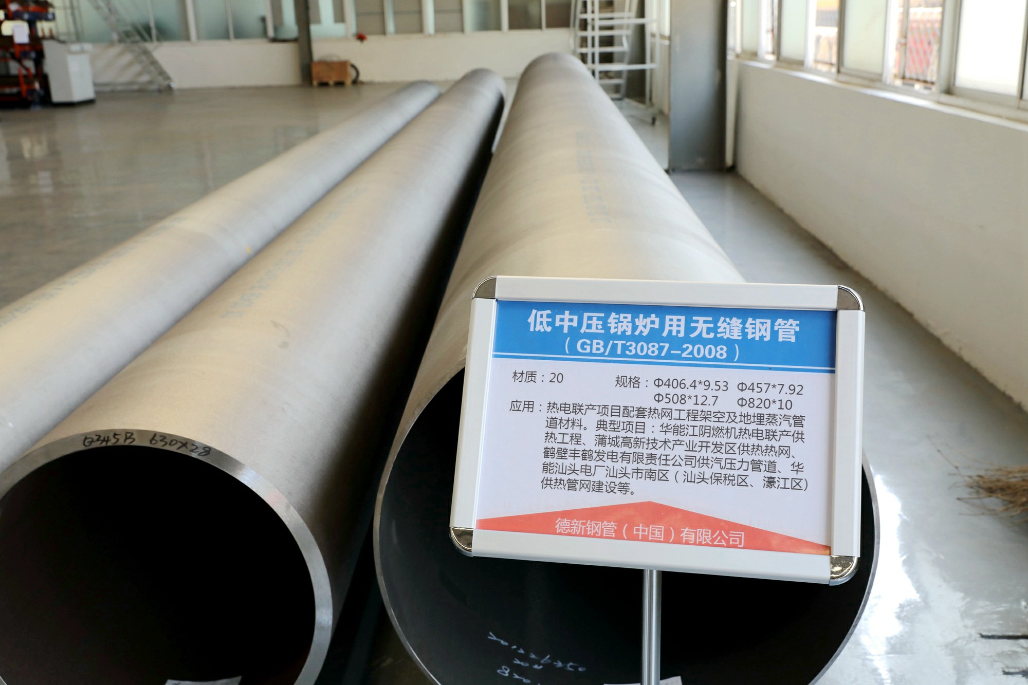 目前,公司大口徑無縫鋼管擁有石化用管、熱電用管、氣瓶用管、氧化鋁溶出套管等拳頭產品,各種材料、標準、規格的型式試驗報告完備。產品具有以下特點:(1)生產靈活,節能環保,小批量、多品種同樣適用;(2)坯料等級高,定制和儲備大量高等級鋼坯;(3)內外表面質量好;(4)尺寸精度高;(5)直徑大,可達1422mm,降低流通阻力,增加送氣量;(6)管壁薄,徑壁比可達40-100;(7)長度長,Φ762mm鋼管最長可達12m,提高施工效率,降低成本;(8)熱擴鋼種適應性強,20、20G、A106B、15CrMo、12Cr1MoVG、P11、P22、P91等材質均可加工。